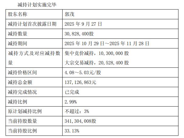 中国经济网北京12月10日讯:再生科技(603601.sh)昨晚发布关于公司控股股东协议转让部分公司股份的公告。公司控股股东郭茂(以下简称转让方或控股股东)与中融华新国际生物科技(北京)有限公司(以下简称受让方或中融华新)于2025年12月8日签署《入股协议》,公司将其持有的62,187,200股无限售条件传统股转让给中融华新(占公司总股本的6.04%)。截至 11 月 28 日为 1,030,143,430 股)。本次转让总价为人民币343,895,216元。本协议转让前,受让方未持有本公司股份;本协议转让后,受让方将持有公司无限售条件股份62,187,200股,占公司总股本的6.04%增资后,将成为持有公司5%以上股份的股东。本次转让尚需经过上海证券交易所合规审查,并在中国证券登记结算有限责任公司上海分公司办理约定转让股份登记手续,最终能否实施尚存在不确定性。请投资者理性投资,注意投资风险。本协议项下转让受让方承诺自标的股票在其所在地办理转让登记之日起十二个月内不减持标的股票。本协议转让不涉及要约收购,不会导致公司股东及实际控制人控制权发生变化,不会对公司管理架构和持续经营产生重大影响,不会损害公司及公司利益。的股东。再盛科技披露的2024年年报显示,公司控股股东、实际控制人为郭茂。 2025年11月28日,再升科技收到国贸出具的《关于减持计划完成及持股1%规模的控股股东及一致行动人股权变动的通知函》。截至2025年11月28日,国茂减持计划已完成。本次减持计划实施期间,郭女士通过集中竞价方式减持 10,300,000 股,通过大宗交易减持 20,528,400 股。减持股份总数为3,082.84万股,合计减持比例为2.99%。截至公告日,郭茂持有公司股份341,304,008股,占公司总股本的33.13%。郭茂及其联系人郭思涵合计持有公司股份343,404,008股,占比33.34%占公司总股本。 2025年10月29日至2025年11月28日,郭茂减持3082.84万股,减持价格区间为4.08元/股至5.03元/股,合计减持137,126,863元。据新浪财经9月26日消息,郭茂自2018年1月26日以来首次减持再盛科技股票。截至目前,他已减持该公司股票3744.09万股,累计释放资金约3.98亿元。经过计算,郭茂总共拿出了5.35亿元。