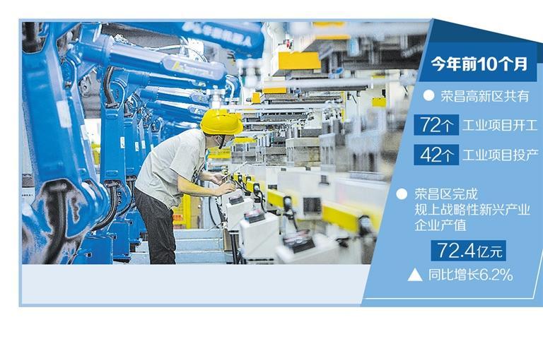 图为重庆东聚金属制品有限公司智能生产线(资料图)近日,重庆市荣昌区30个项目开工投产,总投资67.8亿元。项目涵盖消费品、信息电子、汽车零部件、智能装备、生物制药等领域。建成达产后,将增加产值80亿元,为当地现代产业集群注入新动能。作为重庆新型工业化主战场,荣昌区近年来不断锚定“工业强区”战略,以制造业、创新科技、民营经济、招商引资、项目建设、数字经济等“活力”为主线。y。不断优化升级传统产业,培育壮大新兴产业和未来产业,加快构建以先进制造业为骨干的现代产业集群体系。在荣昌高新区,鑫盛华铜业等一批项目正在加速建设。荣昌高新区围绕智能能源网联、智能制造、新材料等战略性新兴和未来产业,建立了产业集群发展格局,形成了“龙头企业、中小企业协同、创新生态支撑”的良性发展模式。 “以重点项目引领,支撑新生产力发展,工业经济提速。”荣昌高新区发展促进中心主任唐翔表示,前10个月今年以来,荣昌高新区共有72个工业项目开工建设,42个工业项目投产。全区规模以上战略性新兴工业企业产值72.4亿元,同比增长6.2%,高于规模以上工业总产值增速3.3个百分点。重庆新世达包装设备有限公司是荣昌区一家专业从事无溶剂复合机研发、制造的国家高新技术企业。采访中,记者看到,两台新研发的无溶剂复合机已装箱准备出口国外。 “与传统覆膜机相比,无溶剂覆膜机更加节能环保,并实现电脑胶水智能点胶,生产效率提高近2次。”新时达公司总经理李凯表示,公司目前拥有全球有效专利4项,国内有效专利120余项,涵盖发明、实用新型、外观设计等多个领域。在科技创新的支撑下,新时达公司发展不断迈上新台阶。“目前,公司已交付无溶剂复合设备2800余台,全国市场占有率超过30%,并已出口李凯表示,今年公司已出口交付设备10余台。荣昌区把加快推进科技创新和自主创新作为重要着力点,通过实施科技强企行动和科技先导培育企业行动计划,政府侧“四位一体”合作,社会侧、产业侧、企业侧推动创新链、供应链、资金链、人才链“四链”融合,全面提升产业发展水平。目前,园区累计培育重庆市级科技型企业827家,国家级高新技术企业98家。围绕智能化、绿色化、一体化方向,荣昌区再次以“人工发展”路径切入产业竞争新优势。全区已建成数字化车间53个、智能工厂4个。在重庆锐德科技集团的生产车间,记者发现150多台自动分线、固线机正在平稳运行。成捆的铜线和磁芯经过绕线、分线、焊接、封装等工序,变成网络变压器产品。彭江涛 导演重庆锐德科技集团运营部负责人表示,得益于智能车间的建设,公司的生产效率得到了大幅提升。公司目前拥有日产超过40万台网络变压器的生产能力,产品应用于网络通信、智能网联新能源汽车、智能家居等领域。今年前10个月,实现产值超过600万元,同比增长90%以上。商务服务准确有效。荣昌区连续三年举办“民营经济高质量发展活动周”,建立区领导联系支持企业常态化机制,成立服务企业专班,为300多家重点企业委派服务专员。今年以来,当地政府积极推动““AI+企业代码服务”,为企业深入开展“我解决问题、做实事”行动,已帮助企业解决600多个问题。