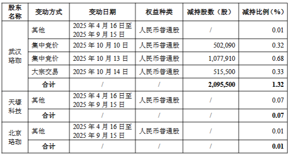中国经济网北京10月15日电 巨辰股份(688123.SH)昨日晚间披露了《关于持股5%以上股东持股5%规模变动的提示性公告》及《简易股东权益变动报告书》。本次股权变动系武汉珞珈吾塔新兴产业投资基金合作(有限合伙)(以下简称“武汉珞珈”)根据自身资金需求,通过集中竞价、区块交易等方式减持公司股份,以及被动解散股权所致。 Kum Plan 信息规划ratiopanya 和公司公司公司公司公司列表。分享。权益累计变动触及5%大关。公告显示,武汉珩嘉减持1.5%2025年10月10日、2025年10月13日通过竞价交易获授公司股份80,000股,占公司总股本的1.00%; 2025年10月14日,通过大宗交易减持公司股票51.55万股,占公司总股本的0.33%。合计减持公司股份209.55万股。按2025年10月10日均价下调143.55元、10月13日均价141.15元、10月14日均价152.41元计算,武汉珞珈三个交易日共释放302789371元。此外,2025年4月16日至2025年9月15日,因公司限制性股票激励计划股份归属导致股本总额增加,武汉珞珈、上海天浩科技有限公司(以下简称“天浩科技”)和北京珞珈天哈投资中心(Limited Parthersh)的持股比例ip)和北京珞珈天哈投资中心(有限合伙)和北京珞珈天哈。北京珩嘉控股有限公司(以下简称“北京珞珈”)部分被稀释,合计跌幅0.09%。本次股权变更后,武汉珞珈、北京珞珈、天浩科技合计持有公司股份39,567,655股,占公司总股本比例由股权变更前的26.42%下降至25.00%。武汉珞珈、北京珞珈、天浩科技均为公司实际控制人陈作涛控制的公司,并形成共同行动关系。本次股权变动不会导致公司股东、实际控制人控制权发生变化,也不会对公司管理架构和持续经营能力产生重大影响。本次股权变更后,武汉珞珈、北京珞珈、天浩科技的减持计划仍在实施中。