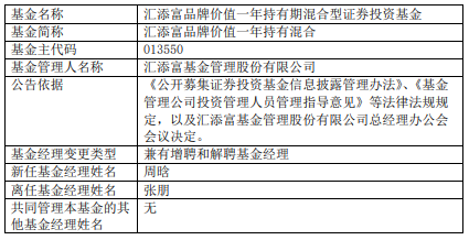 中国经济网北京10月17日电今日,汇添富基金宣布持有汇添富品牌价值一年,接受周翰为混合投资,张鹏则辞职。周寒于2020年7月加入汇添富基金管理有限公司。2025年8月14日至今,担任汇添富新兴消费股基金经理助理。汇添富品牌价值一年混合空调成立于2021年12月21日,截至2025年10月16日,其本年收益率分别为34.13%、33.45%,成立以来收益率分别为6.39%、3.97%,合计净资产分别为1.0639元、1.0397元。