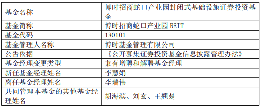 中国经济网北京10月17日电 今日,博时基金公告称,博时投资蛇口产业园REIT聘任李慧娟,李瑞伟辞职。资料显示,李慧娟于2007年至2012年担任安永华明会计师事务所/高级审计师; 2012年至2015年,中华信息技术有限公司/财务经理; 2015年至2021年,华商蛇口工业区控股有限公司/高级运营经理; 2021年至今博时基金管理有限公司/曾担任博时交易蛇口产业园封闭基础设施证券投资基金、博时金开产业园封闭基础设施证券投资基金的基金管理人。现任博时中国蛇口产业园封闭式投资基金基础设施证券基金经理等。