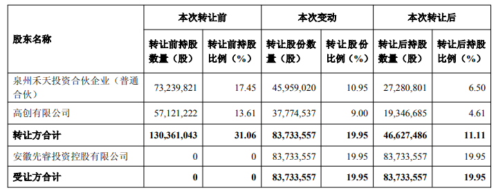 中国经济网北京12月29日电 天创时尚(603608.SH)27日发布关于筹划控制权变更及复工复产进展情况的公告。经公司向上海证券交易所申请,公司股票、可转债及可转债自2025年12月22日、2025年12月24日开市起停牌,公司股票、可转债及可转债自12月259日(12月259日星期一)开市起恢复交易。天创时尚于停牌前交易日12月19日涨停,收于8.33元,涨幅10.04%;今日开盘报9.16元,涨幅9.96%。天创时尚27日发布关于控股股东及实际控制人拟变更的提示性公告。 2025年12月26日,泉州禾田投资合伙企业(普通合伙),其控股股东为泉州禾田投资合伙企业(普通合伙)。天创时尚第一大股东(以下简称“泉州禾田”或“乙方1”)、第二大股东高创股份有限公司(以下简称“祥创禾田”“香港创新2”),(以上两方合称“转让方”)及实际控制人李林及安徽先瑞投资控股有限公司(以下简称“安徽先瑞”) “甲方”、“收购方”或“受让方”)签署《天创时装有限公司股权转让协议》(以下简称“协议”)。泉州和田、香港高创拟以转让协议形式,分别以7.50元/股的价格转让给安徽先瑞市公司45,959,020股和37,774,537股(分别占公司当前总股本的10.95%和9.00%,合计占公司当前总股本的19.95%)。公司持股比例降至6.50%;香港高创持有公司股份减至4.61%;安徽先瑞持有该公司股份增至19.95%。本次股权变动不构成关联交易,不涉及要约收购。上述股权变更完成后,公司控股股东将变更为安徽先瑞,实际控制人将变更为胡贤根。受让方安徽先瑞收购价款总额为人民币628,001,677.50元,资金来源为自有资金或合法自筹资金。卡胜股份转让协议显示,各方同意本次交易的股份转让价格为每股7.50元(含税,下同),目标股份转让费为人民币628,001,677.50元(大写字母:鲁一二千八百一千鲁百七十元五角零分,含税,下同)。其中,乙方1收到的股权转让费为344,692,650.00元(大写字母:3044902650元),乙方2收到的股权转让费为283,309,027.50元(大写字母:283,309,027.50元)(大写字母:283,309,027.50元)(大写字母:283,309,027.50元)一百三百三百三百三百三百三百三百三百三百三百三百三百三百三百七千)。